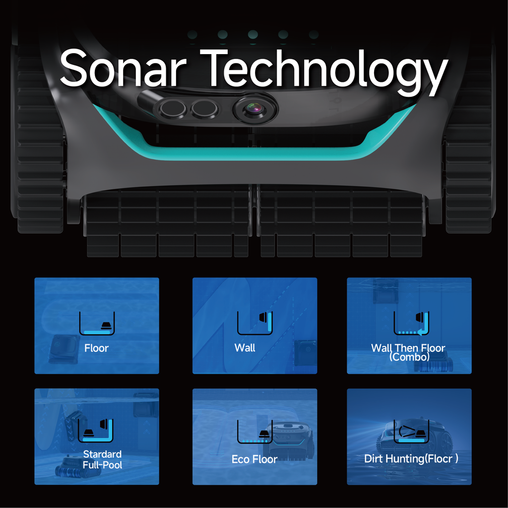 - Cleaning Modes: Vision, Full, Floor Only, Wall Only, Waterline Only, Wall then Floor, Turbo, Eco