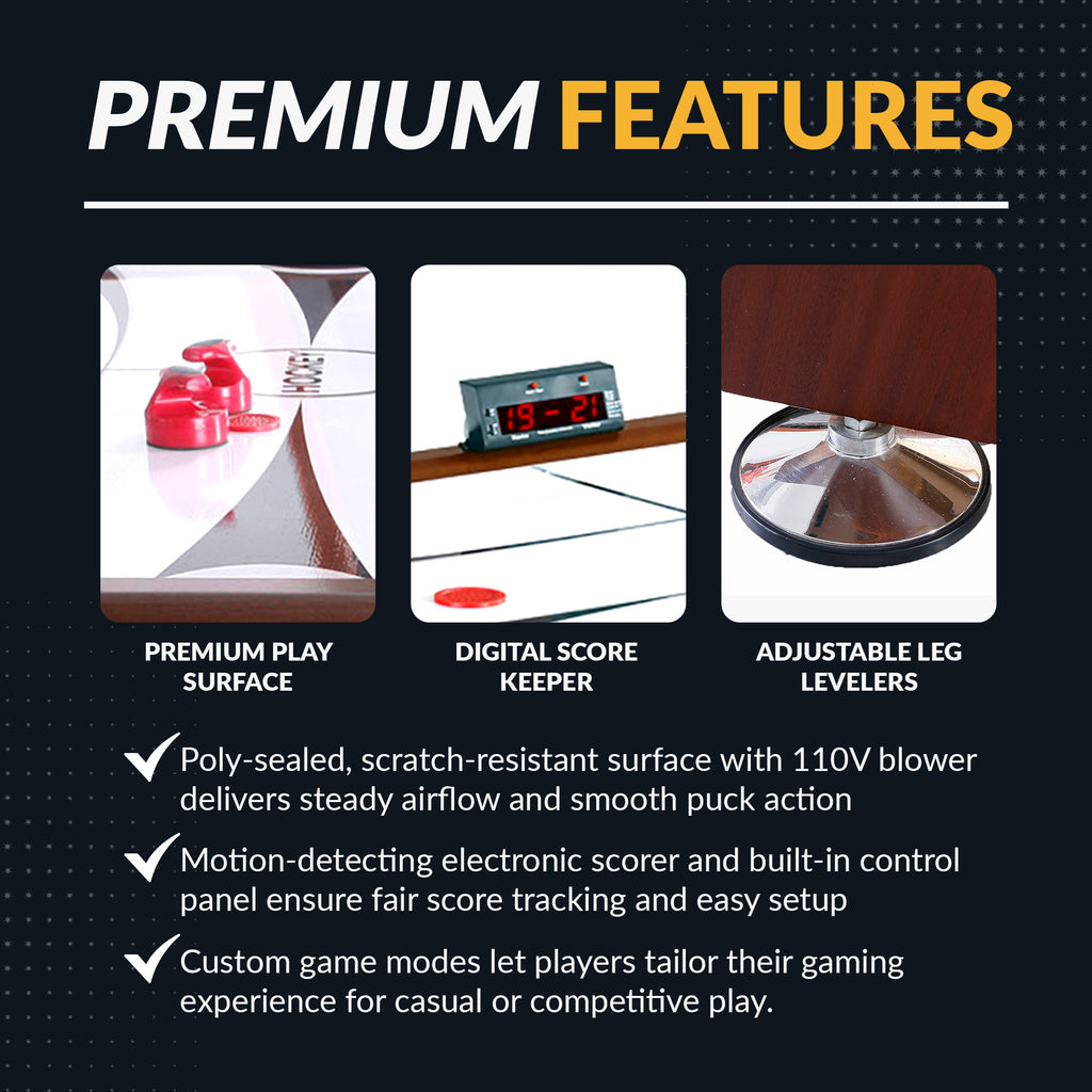 Bring arcade-quality excitement home with the Brentwood 90" Air Hockey Table, a premium full-size air hockey table designed for fast-paced competitive play. Featuring a super-fast certified playfield, dual high-output blowers, and automatic electronic scoring, this contemporary air hockey table delivers smooth, powerful performance for family game rooms, basements, and entertainment spaces.
